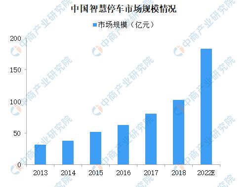 據中商產業(yè)研究院發(fā)布的《智慧停車行業(yè)市場前瞻與投資戰(zhàn)略規(guī)劃分析報告》,2018年智慧停車市場規(guī)模突破100億元,2022年我國智慧停車場系統市場規(guī)模超過180億,中國智能停車場系統保持高速發(fā)展態(tài)勢。
