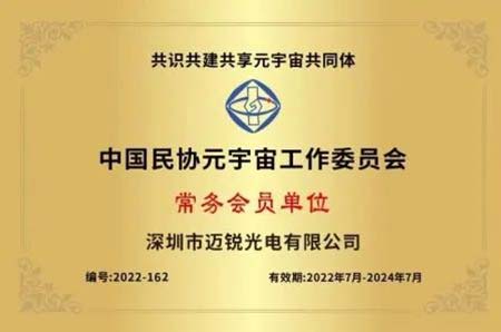 近日,邁銳光電與中國民營科技實業家協會元字宙工作委員會(以下簡稱“中民協元宇宙工委”)進行深入交流,基于雙方共同的戰略共識與一致決定,邁銳光電加入中國民協元宇宙工作委員會,成為其常務委員單位。