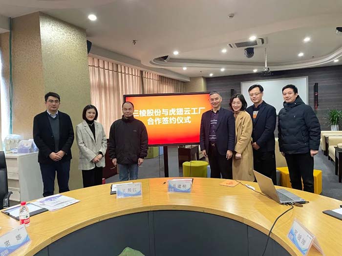 2023年1月5日,三棱股份董事長岳建明博士與江蘇老虎云科技股份有限公司董事長吳邦江簽訂戰略合作協議。根據協議,雙方將重點在推廣數字化、采購數字化系統建設等云服務領域展開深度合作,為實現新一輪的革新與躍升奠定基礎。