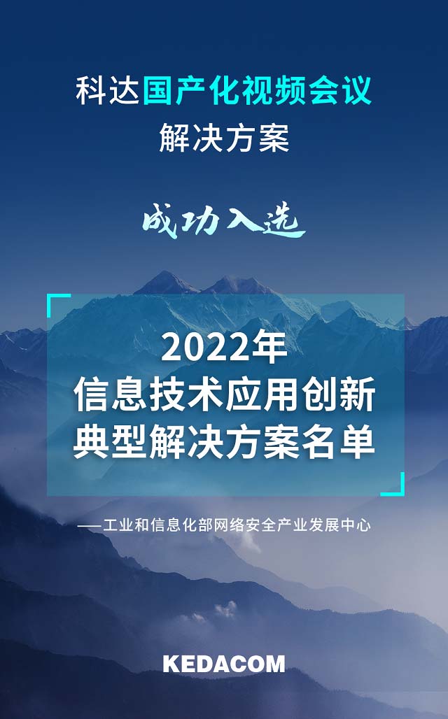 近日,工信部網安中心公示了“2022年信息技術應用創新典型解決方案”入圍名單,“科達國產化視頻會議解決方案”成功入選。