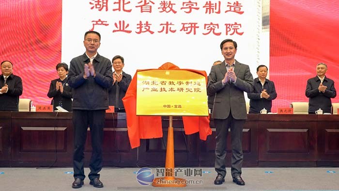 中共宜昌市委書記熊征宇(左)、北京東土科技董事長李平(右)共同為湖北省數(shù)字制造產(chǎn)業(yè)技術(shù)研究院揭牌