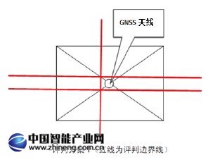 2)通過GNSS天線安裝的具體位置及距前后左右的距離,可以反算車輛邊緣(或輪胎)的精確位置,在考試路段電子地圖上設(shè)置車輛邊界或輪胎位置的評判邊界線,用于考試項目的評判,車輛邊緣位置越界即判為不合格。