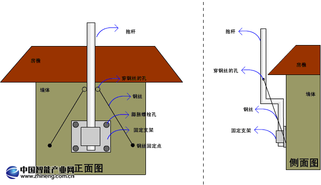 由于廠房房頂不便安裝,因此建議采用以下結構的支架對基站進行安裝。