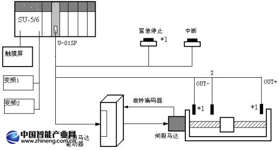 在實際使用中,帶中斷的定位非常有用。例如在測抓工作時,如果測抓檢測到磨削尺寸已經到達設定值,立刻發出中斷信號,U-01SP接收到該信號立即發出停止指令給伺服系統。
