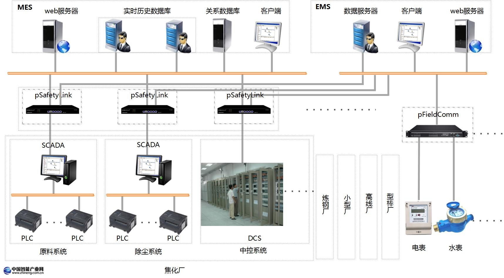 鋼鐵冶金企業(yè)MES和能源管控中心的建設是快速降低產(chǎn)品單耗,減少排放的有效手段,也是企業(yè)由數(shù)量型向質(zhì)量效益型轉(zhuǎn)變的重要舉措。鋼鐵冶金企業(yè)具有生產(chǎn)流程長、生產(chǎn)裝置分布點多、面廣的特點。其控制系統(tǒng)的種類、廠家眾多且紛繁復雜,網(wǎng)絡架構層次較多,給MES、EMS系統(tǒng)的信息安全建設帶來很大的挑戰(zhàn)。
