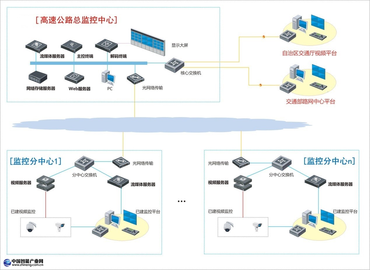 高速公路視頻監(jiān)控系統(tǒng)主要是對收費(fèi)站、隧道、服務(wù)區(qū)等進(jìn)行監(jiān)控,歷經(jīng)10余年的發(fā)展,由于各路段在不同時期選擇的監(jiān)控技術(shù)體系和設(shè)備廠家不盡相同,導(dǎo)致各路段的監(jiān)控系統(tǒng)不能完全兼容和互通,無法充分發(fā)揮交通監(jiān)控的全局路徑誘導(dǎo)、多路徑交通流量調(diào)控、聯(lián)網(wǎng)調(diào)度、應(yīng)付突發(fā)事件及時統(tǒng)一調(diào)度的功能,更無法最大程度地發(fā)揮高速公路的通行能力,建設(shè)互聯(lián)互通的聯(lián)網(wǎng)視頻監(jiān)控系統(tǒng)迫在眉睫。