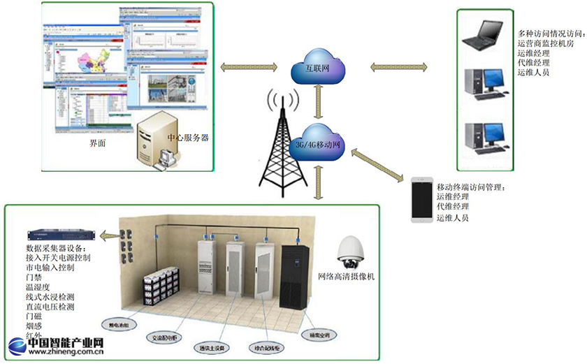 基站一般為無人值守,它的無故障正常運轉尤為重要,且大多基站建設分散,地處偏僻,且相距甚遠。如何統一有效的管理它們,做到防患于未然,是一致以來困擾管理層的課題。 環境,如溫度濕度等;基站必須處在高度安全的狀態下工作,如必須有防火、防水、煙感、竊盜、掉電等多種告警系統;必須時時刻刻如親臨現場一樣24小時監管這些設備。