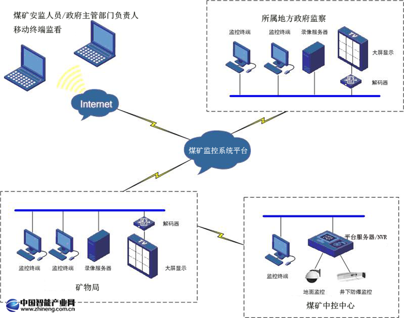 網絡監控系統將是現代煤礦安全生產技術防范中必不可少的部分。利用云聯四方遠程視頻監控平臺系統,地面或中心監控人員可以直接對井下情況進行實時監控,不僅能直觀的監視和記錄井下工作現場的安全生產情況,通過在井下安裝溫濕傳感器、瓦斯探測器,能及時發現事故苗子,防患于未然,也能為事后分析事故提供有關的第一手圖像資料,為將來的安全生產提供可靠的保證。因此遠程視頻監控平臺系統必然是現代礦井安全生產監控系統的重要組成部分。