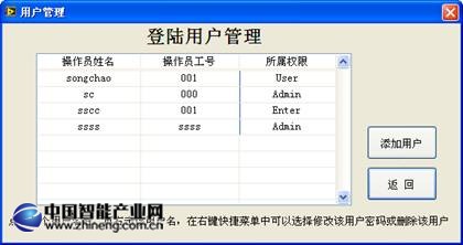 圖4.5 前面板登陸/用戶管理界面